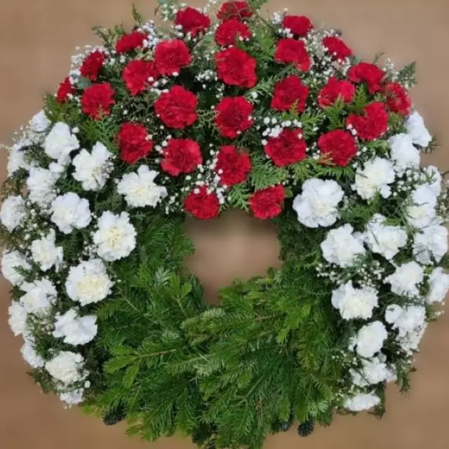 Kranz mit Nelken. Geeignet für jede Trauerfeier.