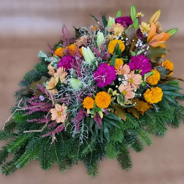 Bukett mit gemischten Blumen. Geeignet für jede Trauerfeier.