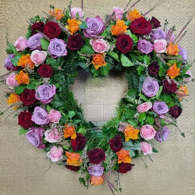 Kranz mit Herz aus Rosen. Als Ausdruck der Liebe. Daher nur für engste Angehörige. Geeignet für jede Trauerfeier.