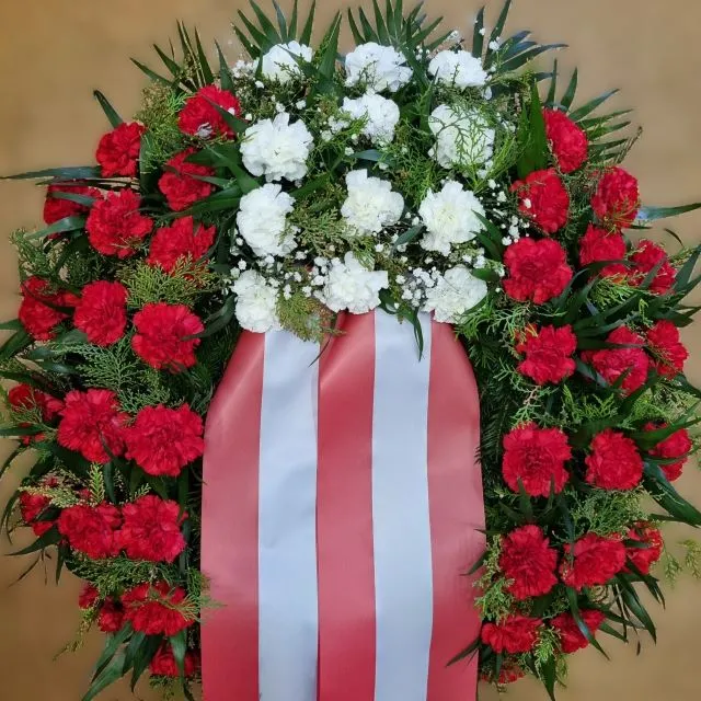 Kranz mit Nelken. Geeignet für jede Trauerfeier.