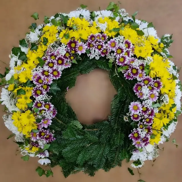 Kranz mit Chrysanthemen. Geeignet für jede Trauerfeier.